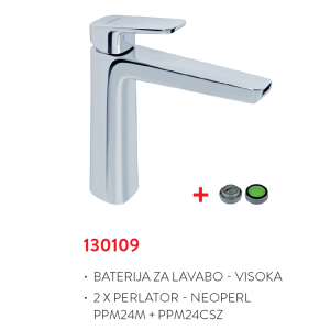 - Montaža na rupu lavaboa, stajaća slavina.