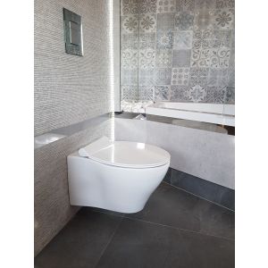 Cena se odnosi na konzolnu WC šolju, set za montažu i vrhunsku tanku (SLIM) WC dasku od duroplasta, sa sporim spuštanjem ("soft-close") i sistemom lakog skidanja zarad čišćenja ("take-off").